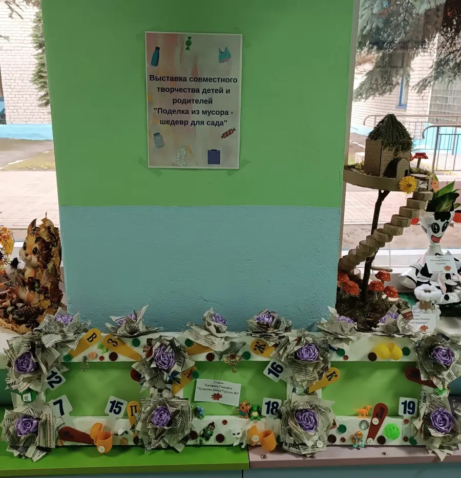 В рамках решения годовой задачи деятельности ГУО "Детский сад № 11 г. Борисова" воспитанники вместе с родителями приняли участие в выставке совместного творчества "Поделка из мусора - шедевр для сада".